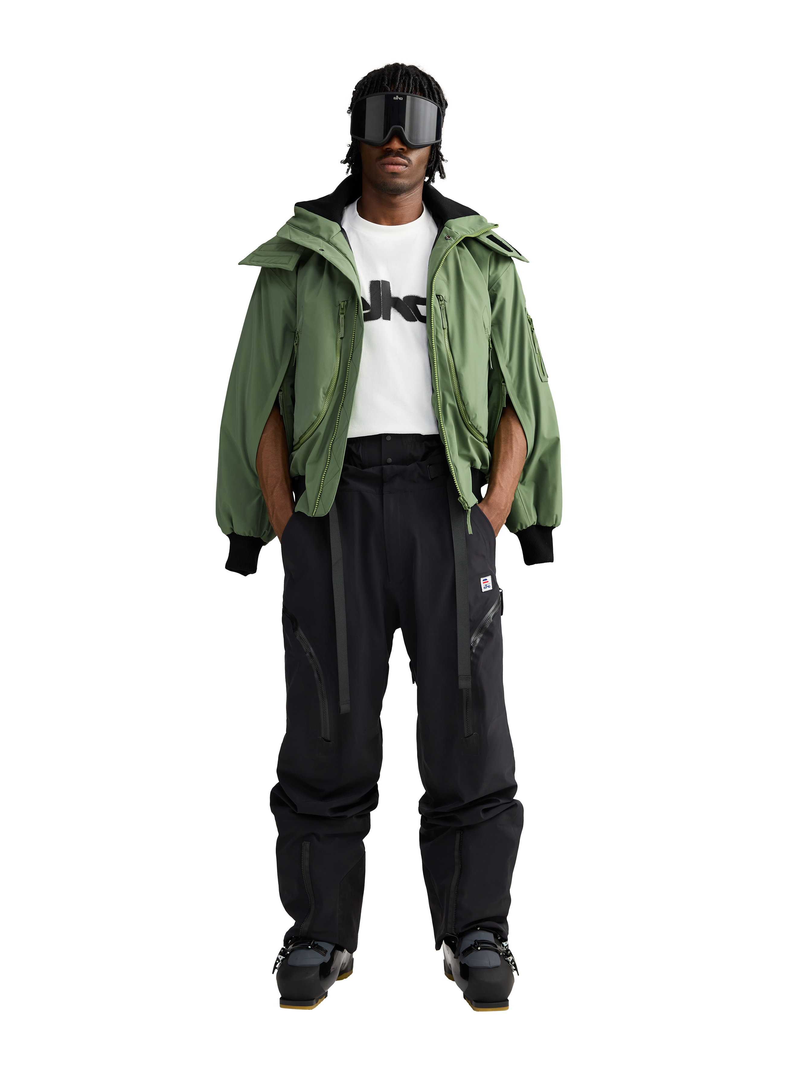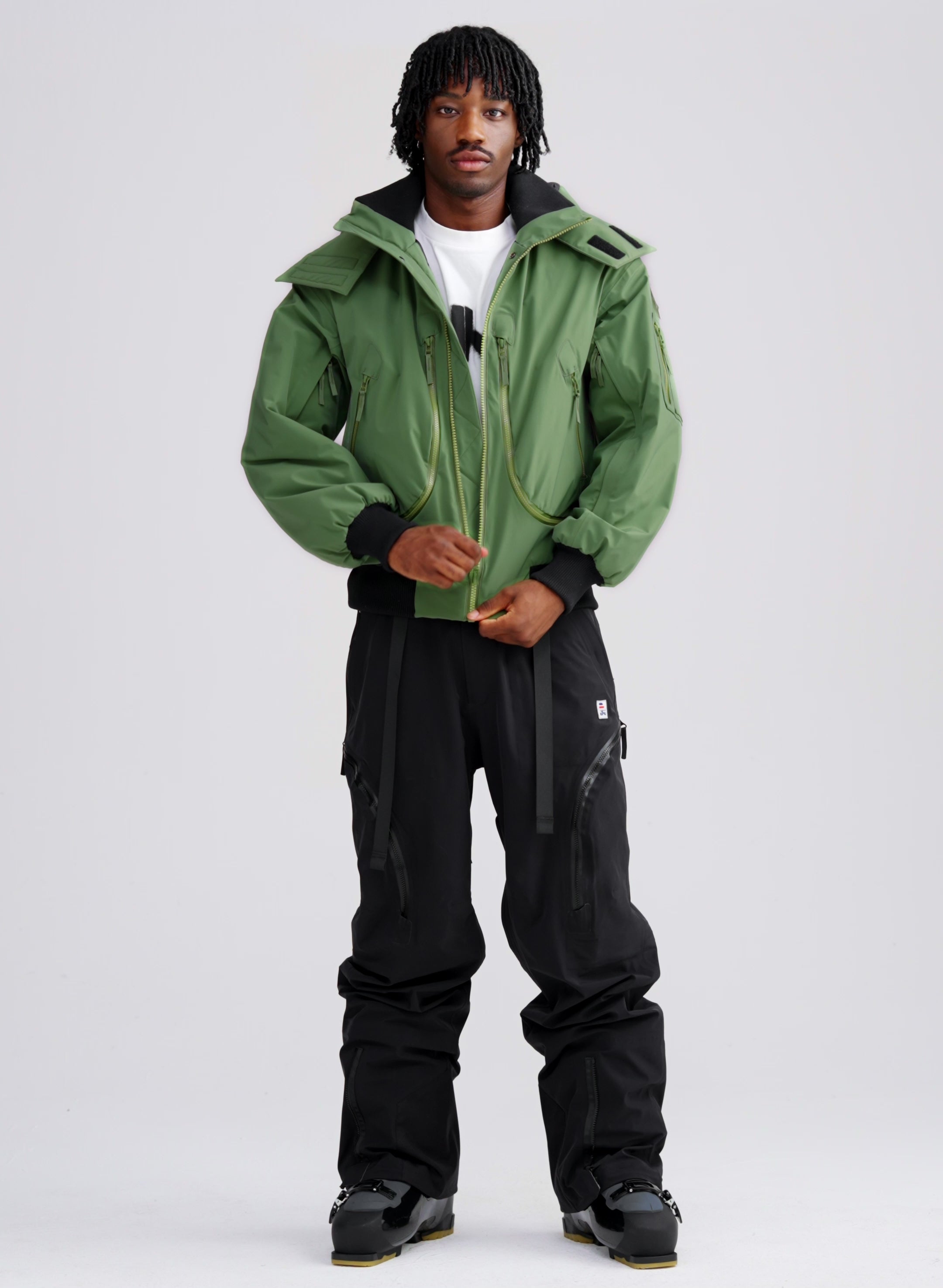 The Iconic PERFORMANCE BOMBER JACKET. Waterproof and breathable for all weather. Maximum comfort and functionality. Boomerang zip pockets keep essentials secure and accessible. Sleeve vents add comfort and let you wear the jacket as a cape. 3-layer outer: 37% bio-based. PRIMALOFT GOLD BIO padding: 100% recycled polyester.