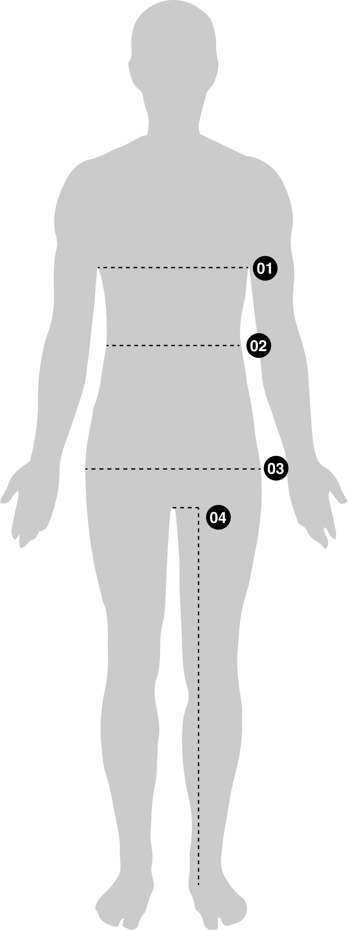 04 | Im hüftbreiten Stand vom Schritt ab Oberkante des Beins bis zum Boden messen.